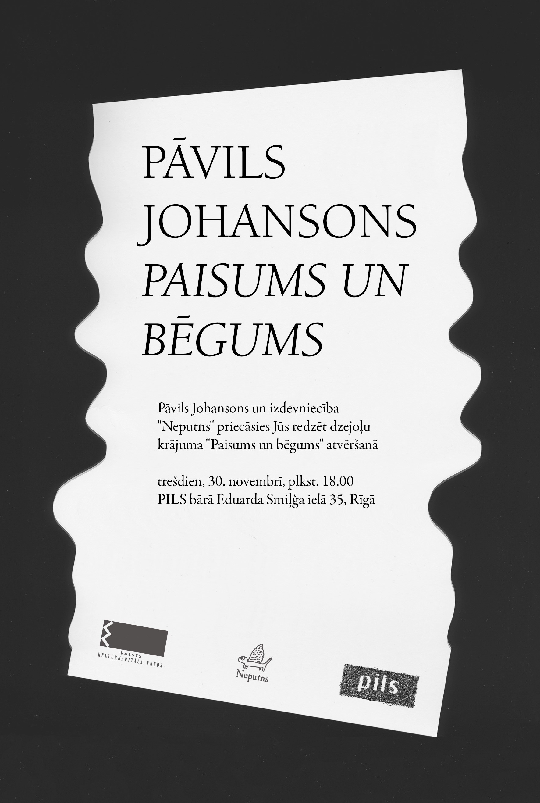 Publicēts: 29. November, 2016 Pāvils Johansons un izdevniecība “Neputns” priecāsies Jūs redzēt dzejoļu krājuma “Paisums un bēgums” atvēršanā