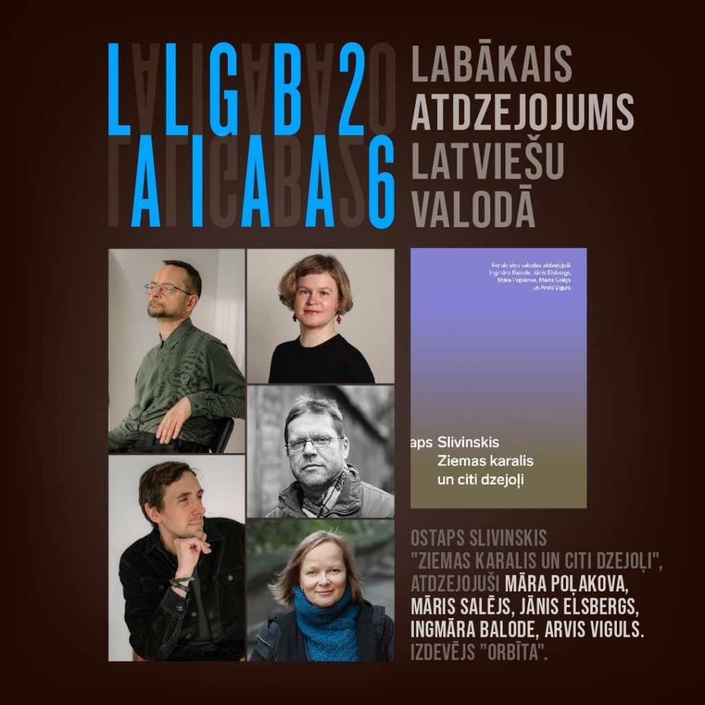 Nominācijā “Labākais atdzejojums latviešu valodā” balvu ieguva Māra Poļakova, Māris Salējs, Jānis Elsbergs, Ingmāra Balode, Arvis Viguls par Ostapa Slivinska dzejas izlases “Ziemas karalis un citi dzejoļi” sastādīšanu un atdzejošanu. Šo darbu izdevis apgāds “Orbīta”. Balva piešķirta par emocionāli satriecošas dzejas lietpratīgu atlasi un atdzeju, veidojot dramatiski piesātinātu un poētiski ietilpīgu krājumu.