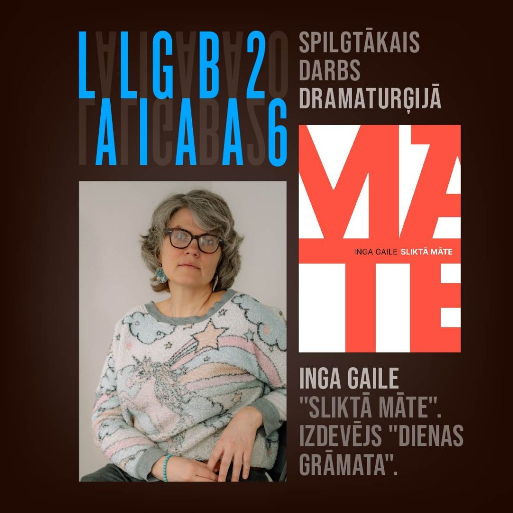 Pēc ilga pārtraukuma, šogad LALIGABA sumināja arī dramaturgus, piešķirot balvu kategorijā “Spilgtākā darbs dramaturģijā”, kur par uzvarētāju tika atzīta Ingas Gailes luga “Sliktā māte”. Izdevusi “Dienas Grāmata”. Balva piešķirta par dramaturģiski spēcīgu, daudzslāņainu un saistošu Asjas Lācis personības interpretāciju.
