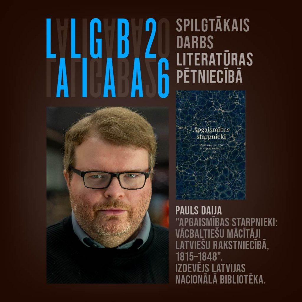 Kategorijā “Spilgtākais darbs literatūras pētniecībā” par labāko tika atzīta Paula Daijas monogrāfija “Apgaismības starpnieki: vācbaltiešu mācītāji latviešu rakstniecībā, 1815–1848”, ko izdeva Latvijas Nacionālā bibliotēka. Balva piešķirta par erudītu ieguldījumu izpratnē par vācbaltiešu kultūras un tās pārstāvju lomu latviešu literatūras un nacionālās pašapziņas izaugsmē.